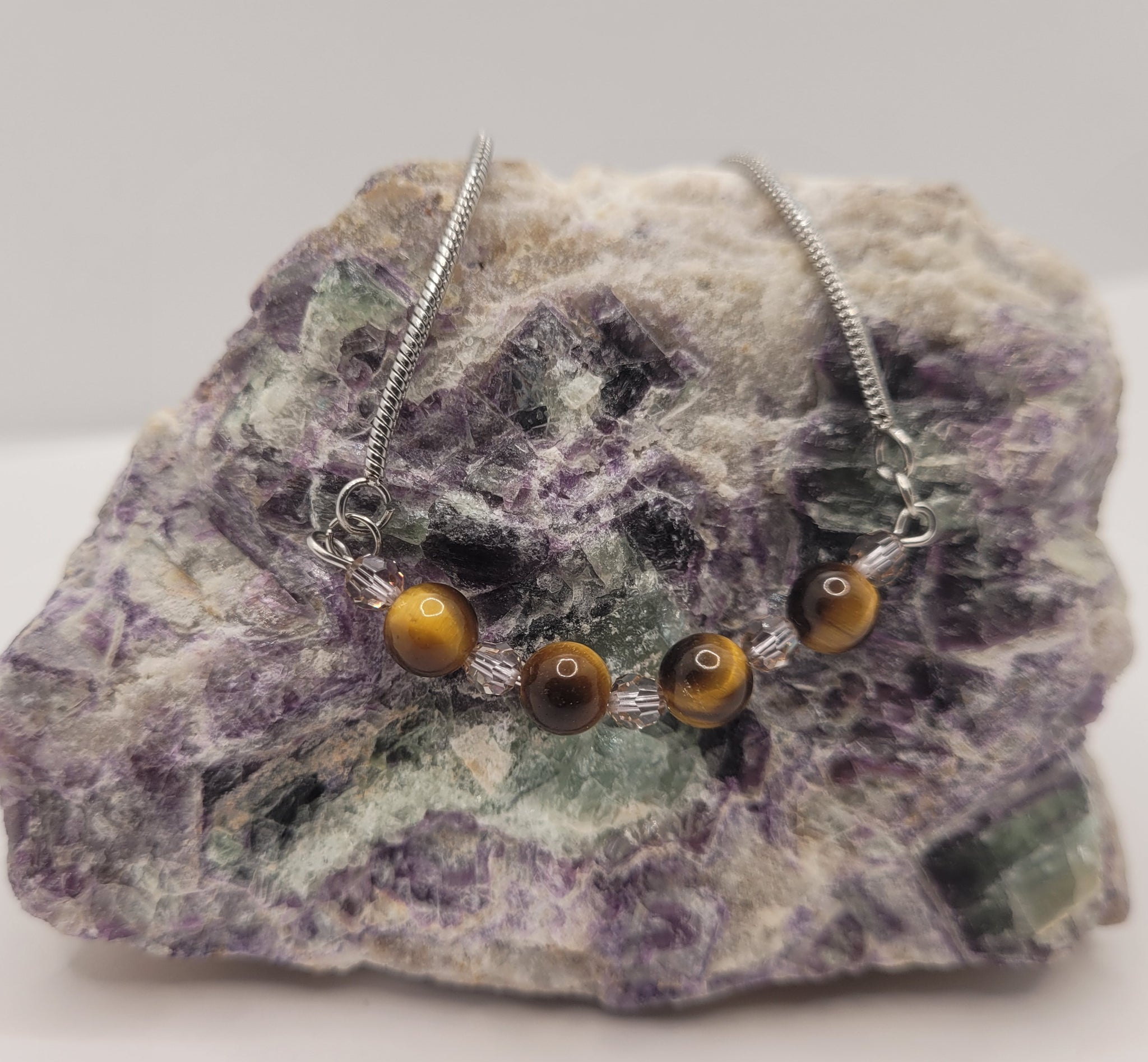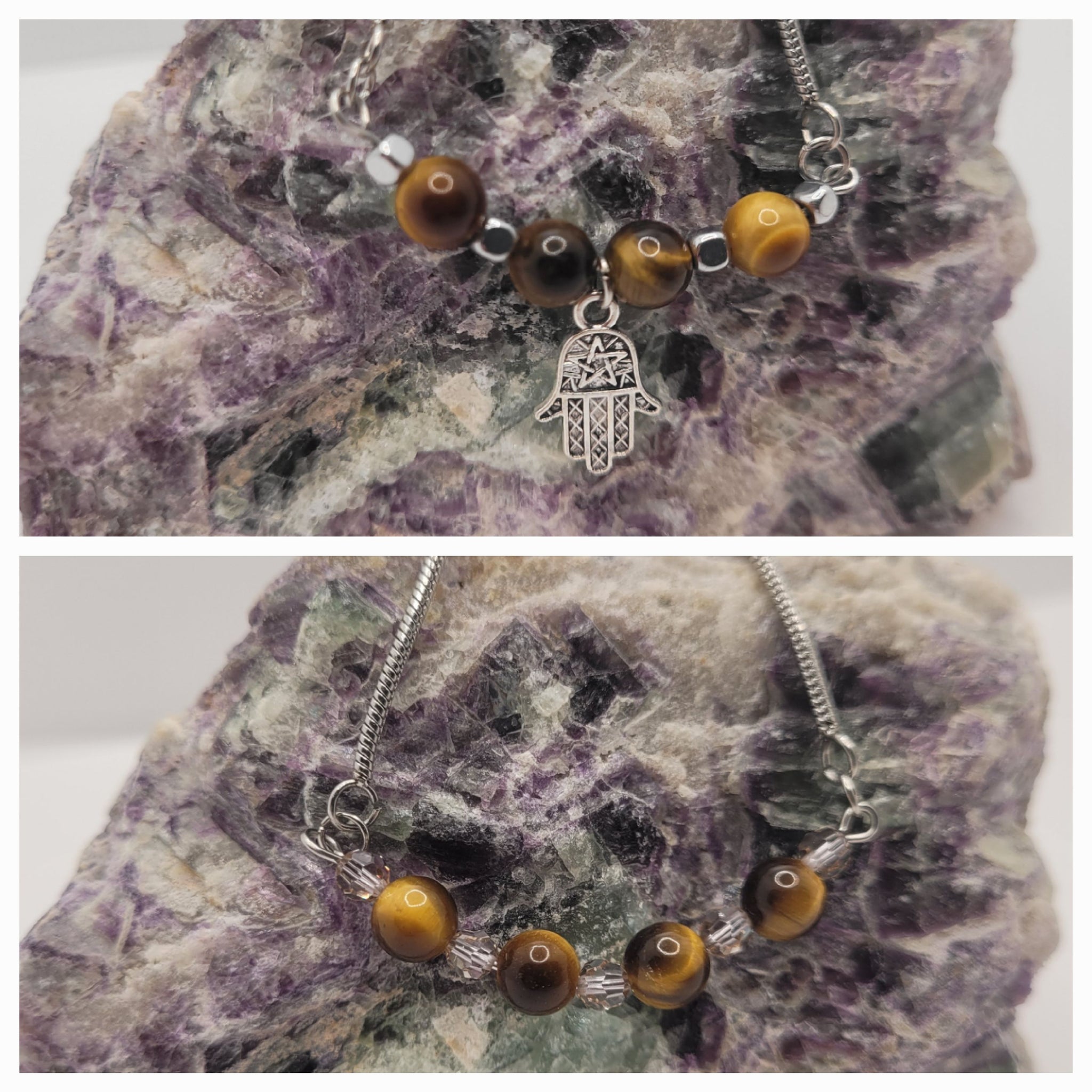 Bracelet Artisanale en acier inoxydable de 24 cm ajustable, coulissante et réglable convient à tout poignet , fait de pierres semi précieuses de 6 mm .