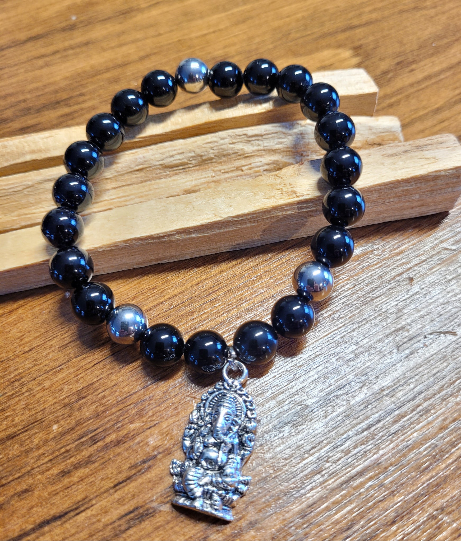 Bracelet Pierres Semi-Précieuses pour elle-Onyx avec Ganesh