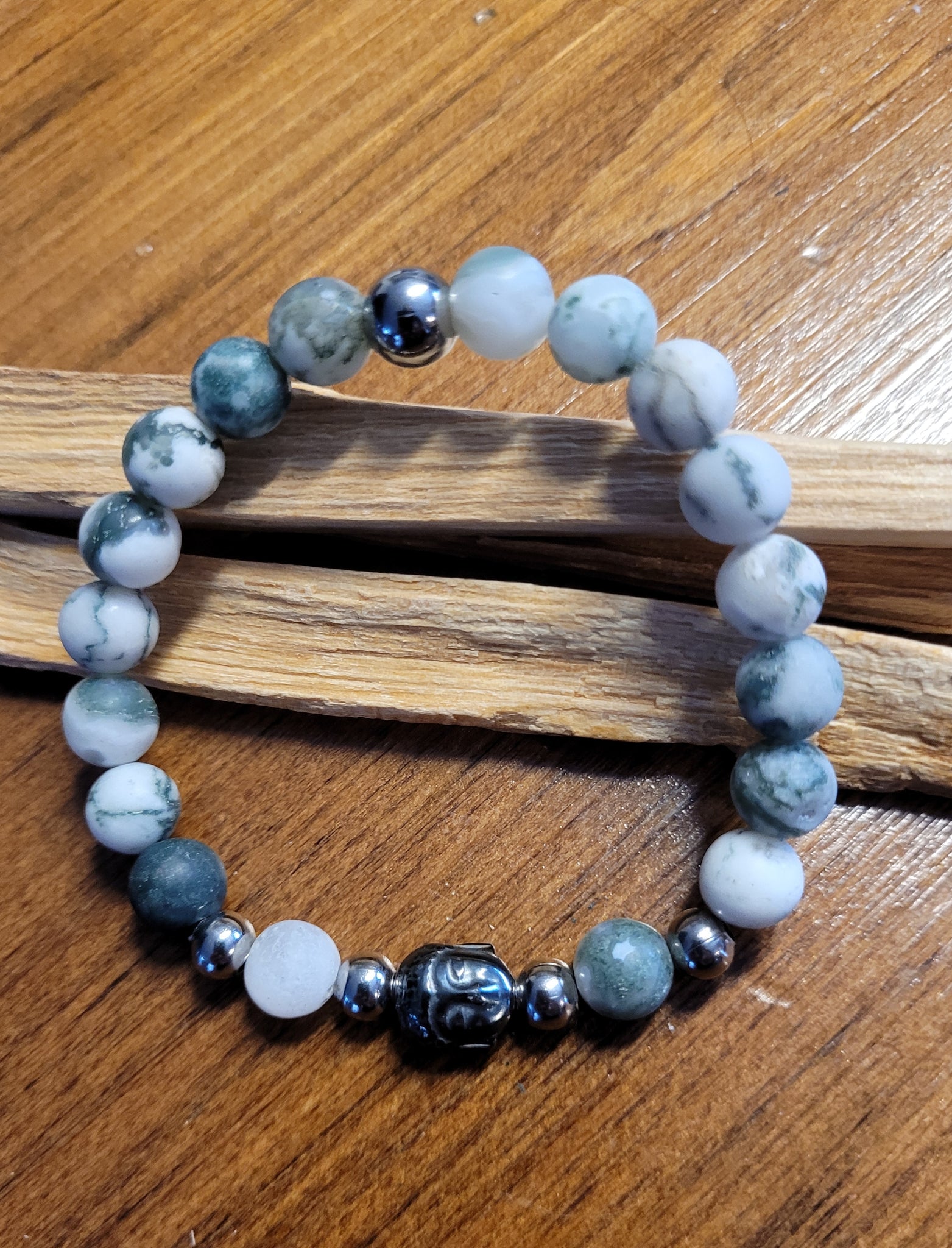 Bracelet Pierres Semi-Précieuses pour elle-Agate mousse mat-Bouddha
