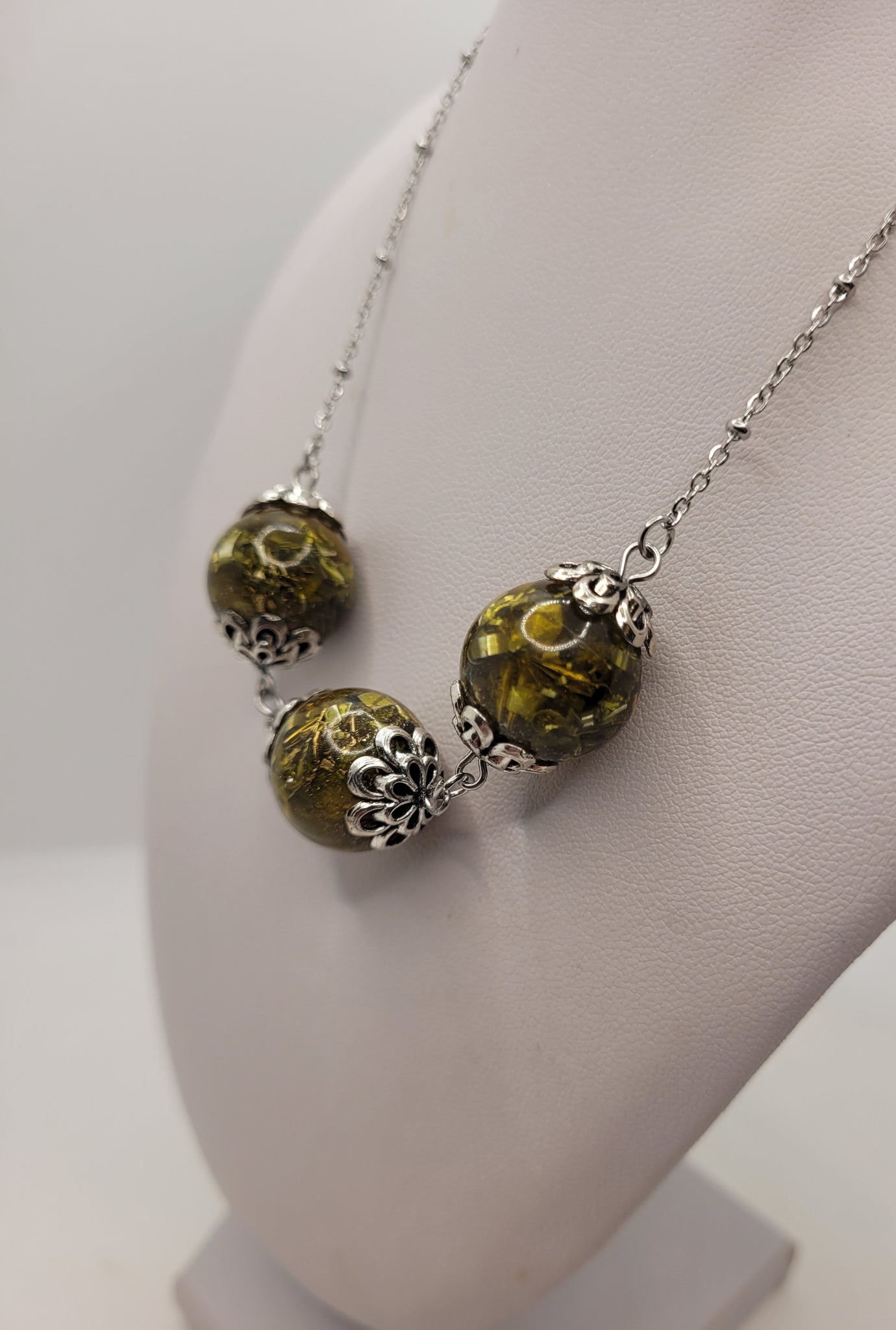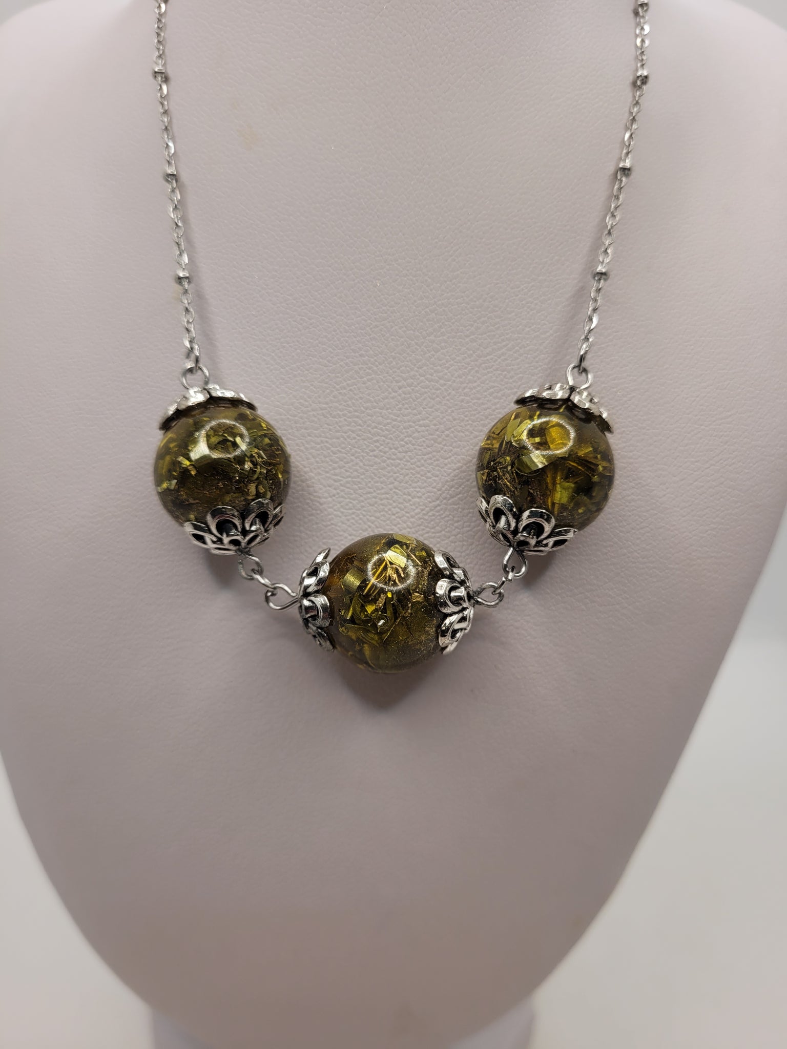 Chaine en acier inoxydable de 21.5 pouces , Perles d'orgonites de 16 mm
