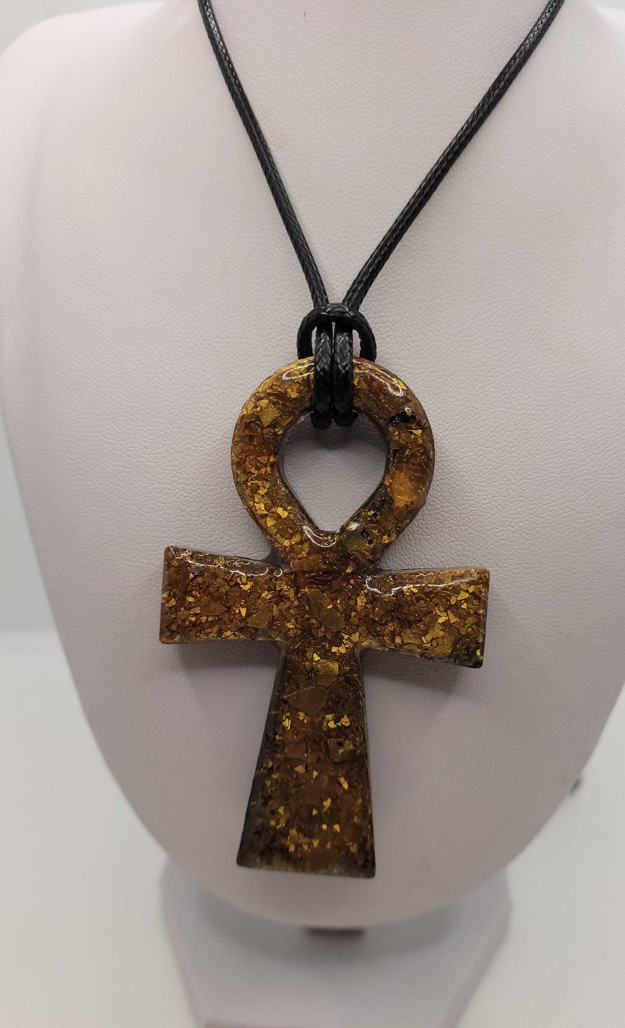 Pendentif Orgonite Croix D'ânhk-Tourmaline Noire